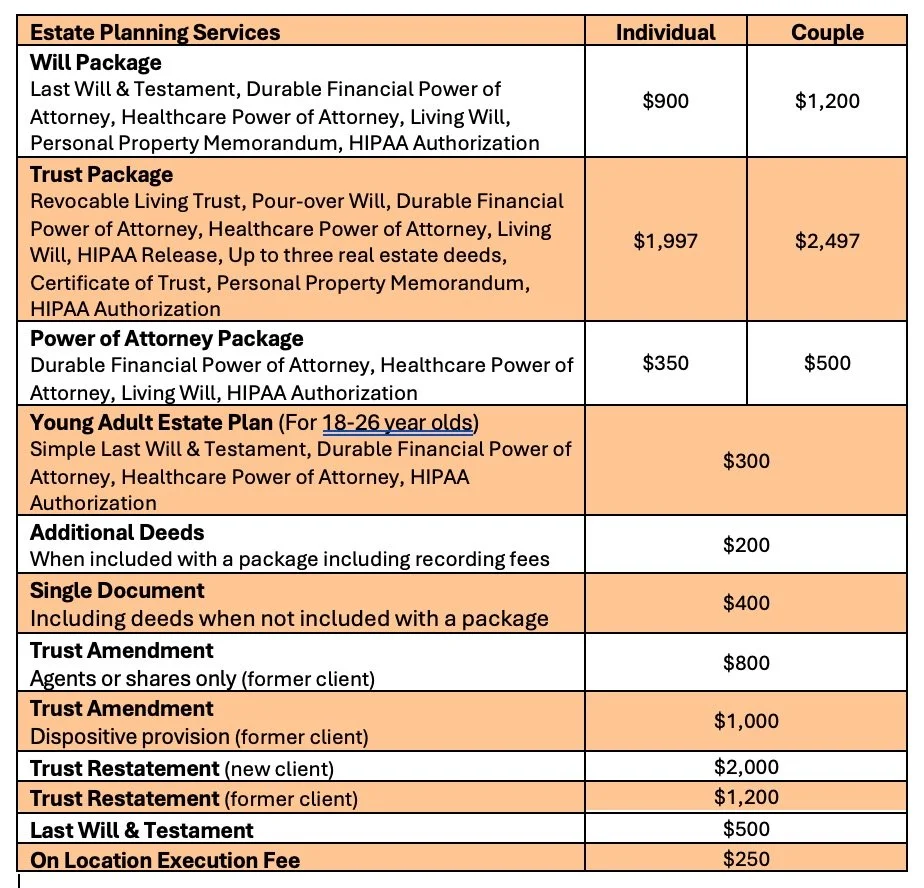 We offer flat-fee estate planning services, designed to be straightforward and customized to your situation.